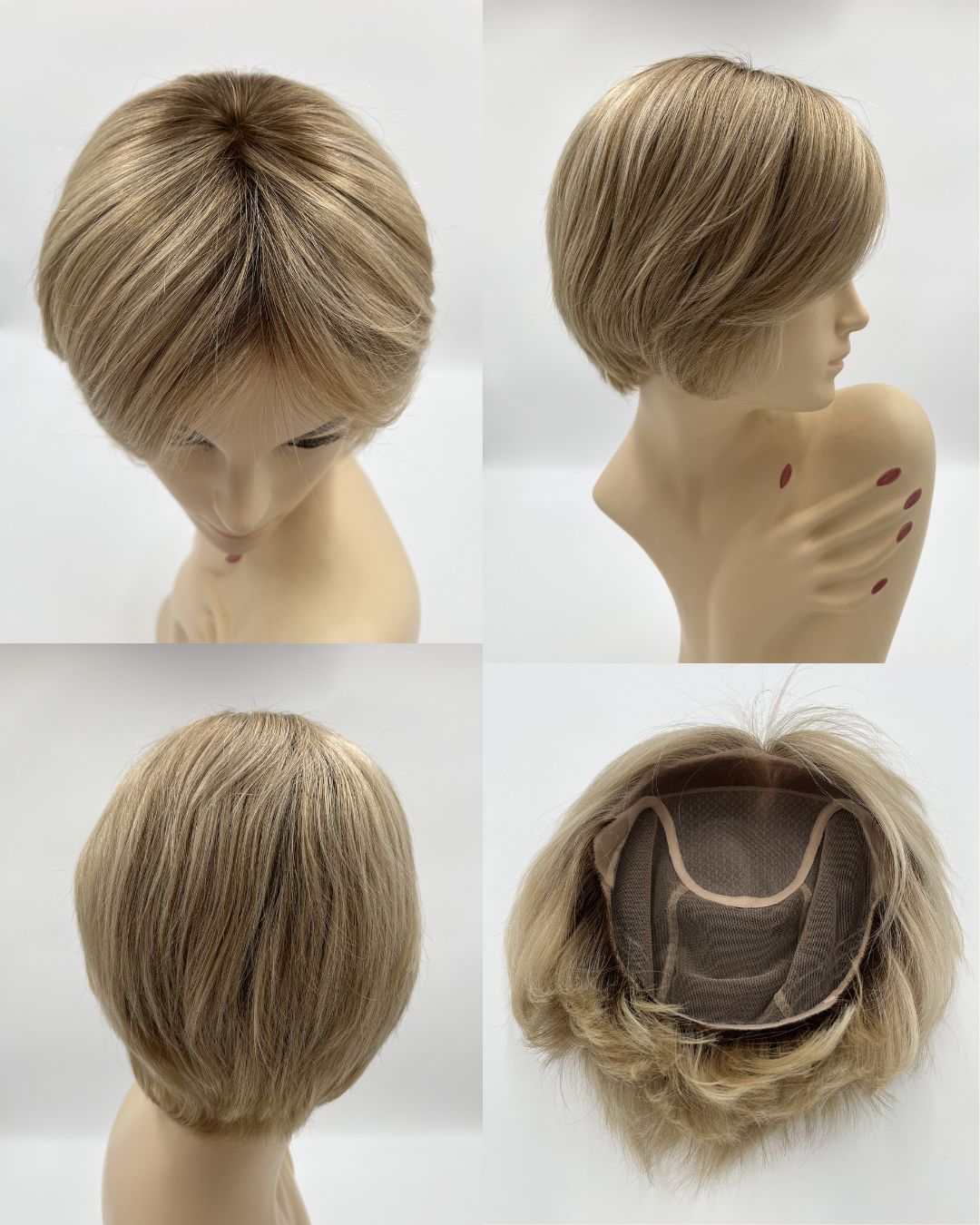 Wig Natasha is crafted from the finest quality 100% human Remy hair available in the industry today. It features a meticulously hand-tied lace front that creates an undetectable, natural hairline, combined with a double monofilament crown for a realistic scalp appearance and multidirectional styling. Precision-calibrated machine wefts are securely constructed along both sides and the nape to enhance durability and maintain a lightweight feel.
